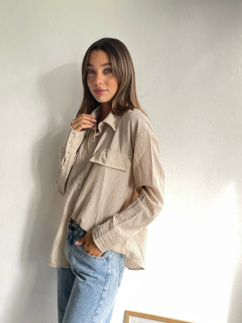 CAMISA HOMBRO CAIDO LINO CAMISERO RAYAS - CAMISA JENNY